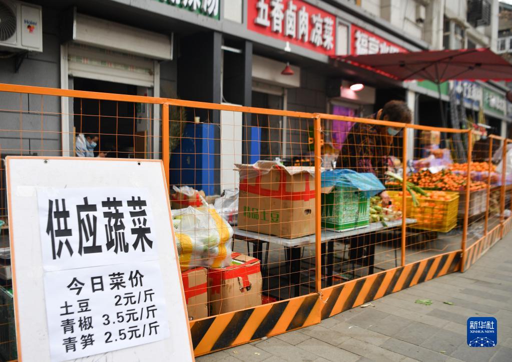12月23日,西安市曲江新區(qū)一小區(qū)引入蔬菜大棚車,住戶在小區(qū)內(nèi)買菜。新華社記者 劉瀟 攝