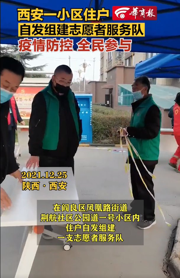 12月25日,外賣人員張欣(左一)在西安市小寨東路一封控小區(qū)配送蔬菜。這幾天,他的業(yè)務量是平時的兩倍。新華社記者 陶明 攝