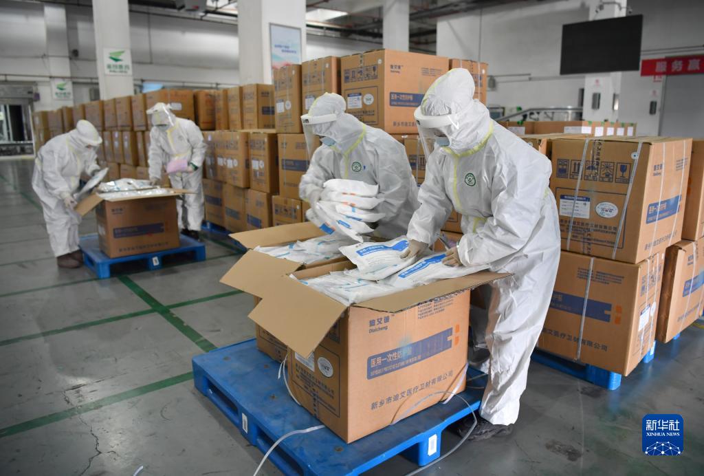 12月28日,陜藥集團(tuán)派昂醫(yī)藥公司工作人員在查看倉(cāng)庫(kù)內(nèi)的疫情防控防護(hù)物資儲(chǔ)備情況。新華社記者 邵瑞 攝