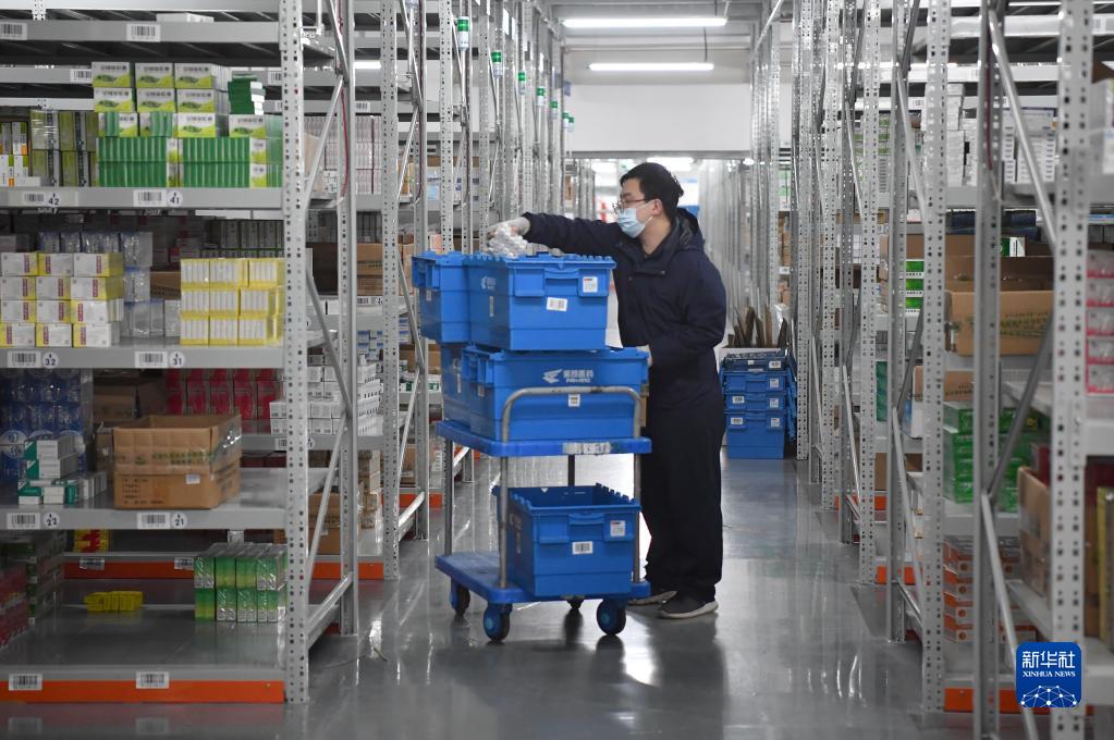 12月28日,在陜藥集團(tuán)派昂醫(yī)藥公司倉(cāng)庫(kù)內(nèi),工作人員對(duì)藥品進(jìn)行拆零分揀。新華社記者 邵瑞 攝