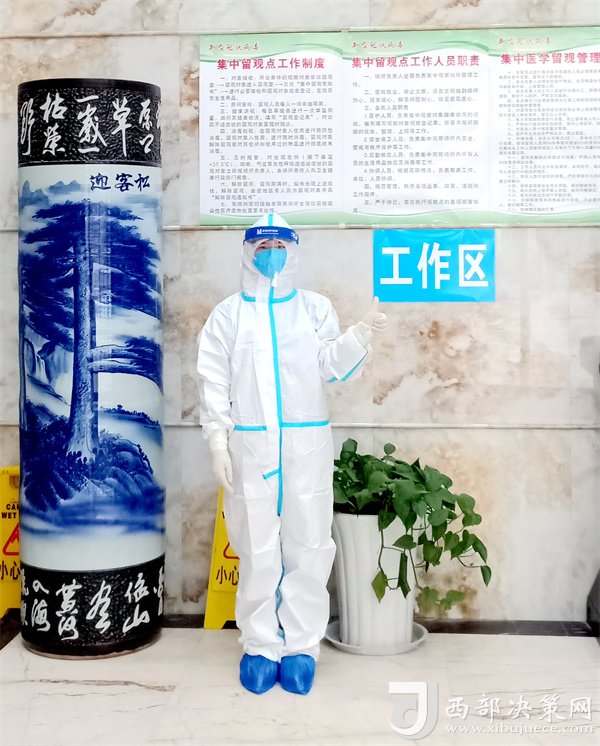 每天,她和隊員們穿著防護(hù)服24小時為隔離群眾掃碼、檢測體溫、遞送三餐、詢問留觀人員狀況、規(guī)范醫(yī)療廢棄物處置。夜深人靜時,在賓館大廳和走廊間,時常可以看見她忙碌而又堅定的背影。