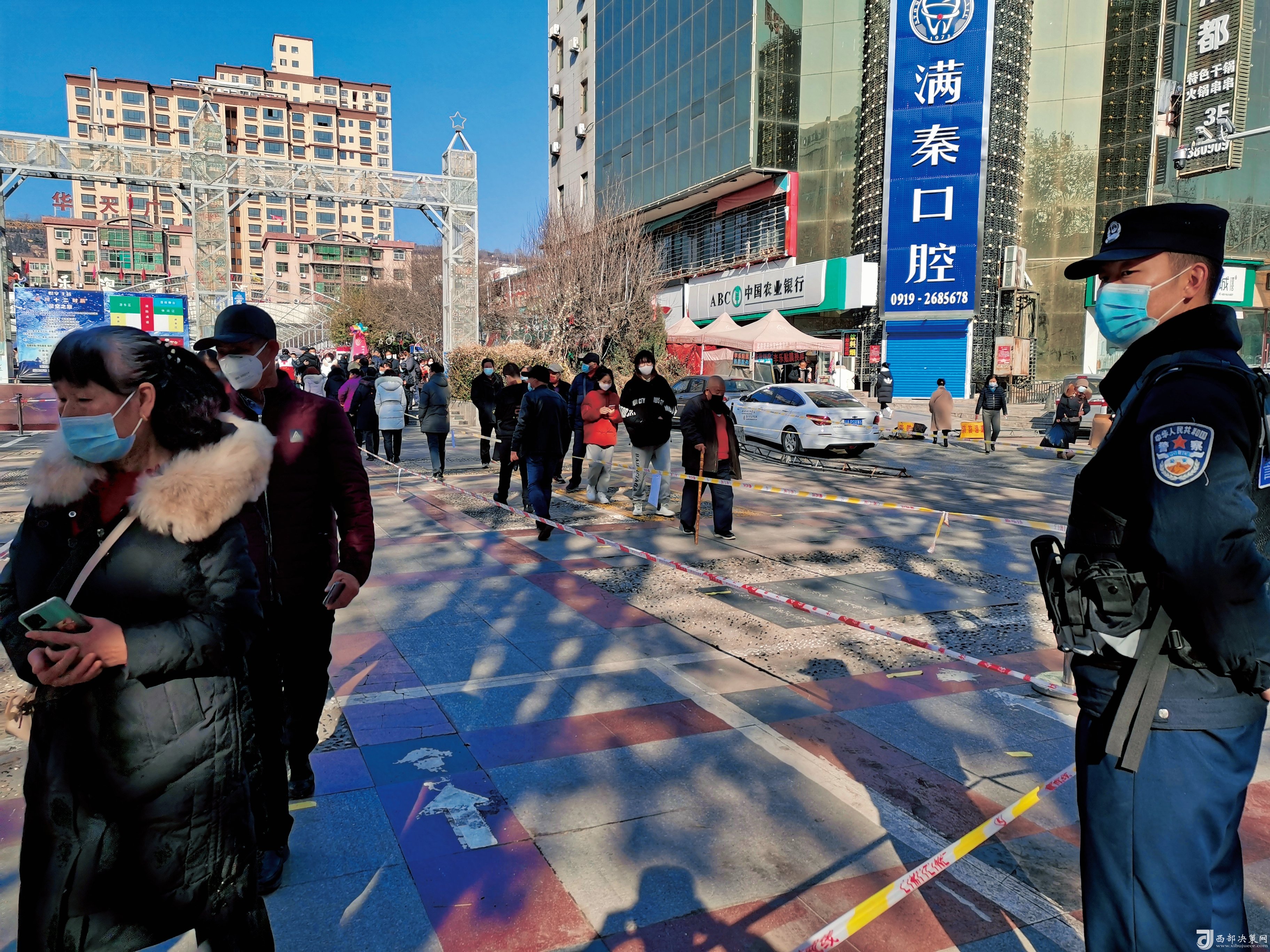 因為疫情肆虐,銅川市王益區(qū)華天廣場專門設(shè)立了核酸檢測站,在每天早上八點(diǎn)到下午六點(diǎn),為源源不段的市民進(jìn)行核酸檢測,紅旗街派出所隨即展開了維護(hù)秩序的工作,向檢測站提供建議,倡導(dǎo)大家井然有序,保持距離。