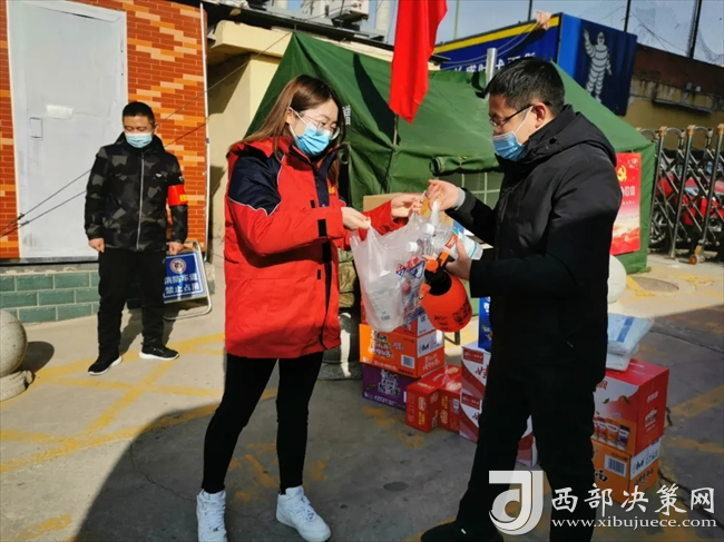西部決策網(wǎng)訊(薛寶貴 通訊員 高源滋)點滴真情,彰顯大愛。1月3日,延安市巾幗建功標(biāo)兵、志丹采油廠機(jī)修車間職工、巾幗志愿者張陽同志來到延安市志丹縣紫程佳苑B座小區(qū)看望慰問奮戰(zhàn)在一線的防疫人員,為他們送上消毒液、口罩、手套等防疫物資和棉大衣、方便面、奶茶飲品等慰問品,并向元旦期間仍然堅守在防控一線的值勤人員致以崇高的敬意和誠摯的問候。