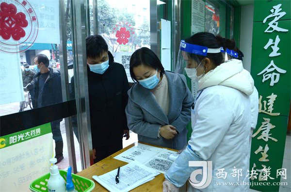 胡敏深入縣城艾斯大酒店、華盛超市、陽光大藥房等多家經(jīng)營單位,實(shí)地督查超市掃碼測溫、佩戴口罩、設(shè)置一米線等疫情防控措施落實(shí)情況,了解市場物資供應(yīng)、穩(wěn)定物價等情況;檢查酒店測溫登記、人員入住、消毒殺菌、供餐等情況;了解醫(yī)療防護(hù)用品價格和儲備、“四類藥品”管控等情況。