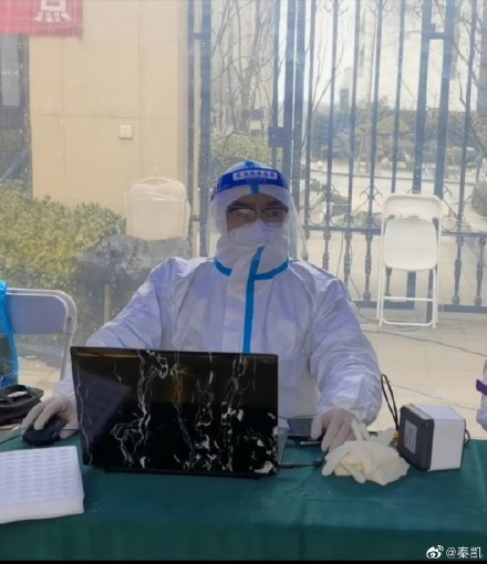 秦凱在社區(qū)協(xié)助核酸采樣