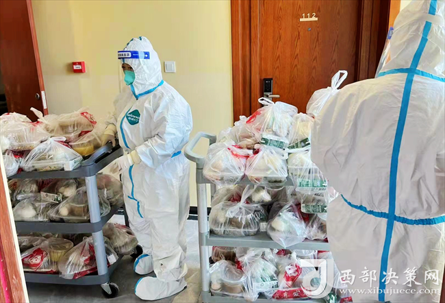 隔離區(qū)里,“大白”們每天準(zhǔn)時(shí)在取餐點(diǎn)將盒飯裝入餐車(chē),迅速穿梭在各個(gè)樓層之間,只為隔離學(xué)生能盡快吃到熱乎的飯菜;送完餐顧不上休息,又開(kāi)始對(duì)319間客房門(mén)口的生活垃圾進(jìn)行消毒、打包,再一趟趟送往廢棄物集中收儲(chǔ)點(diǎn);為防止疫情外溢,她們利用晚上休息時(shí)間,抓緊學(xué)習(xí)個(gè)人防護(hù)知識(shí),接受醫(yī)護(hù)人員專(zhuān)業(yè)培訓(xùn),將穿脫防護(hù)服、口罩、手套、護(hù)目鏡、腳套、消毒等每一個(gè)環(huán)節(jié)要求,牢牢刻在心里面、化在行動(dòng)上。