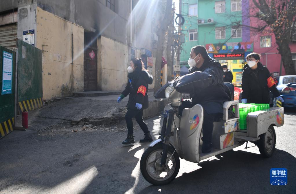 1月12日,三家村工作人員根據(jù)前期摸排情況逐戶派送午餐。新華社記者 張博文 攝