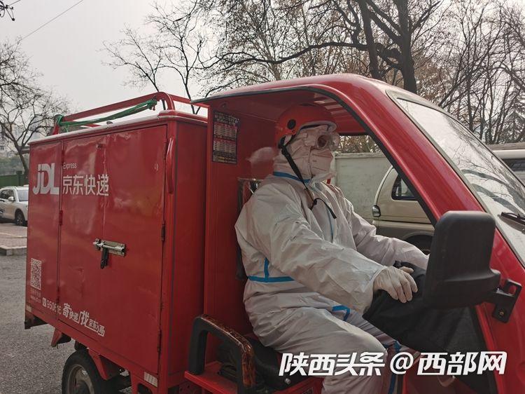 京東物流西北區(qū)西安興慶宮營(yíng)業(yè)部小哥正在送貨