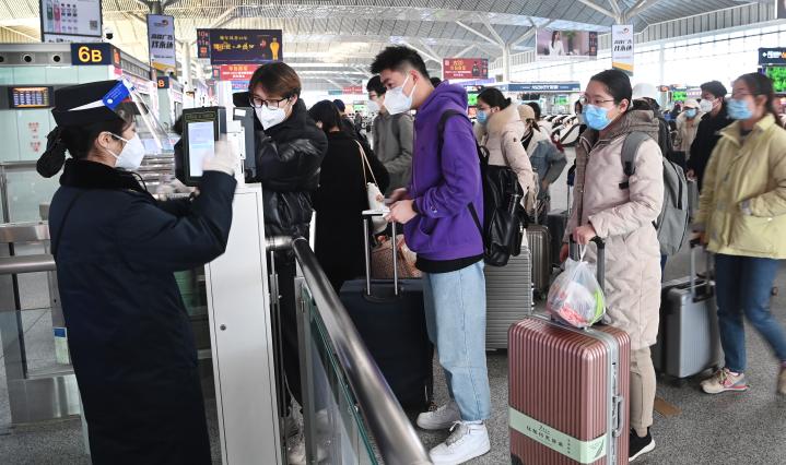 1月16日,西安北客站,離校返鄉(xiāng)的西安高校學(xué)生在排隊進(jìn)站。新華社記者 陶明 攝
