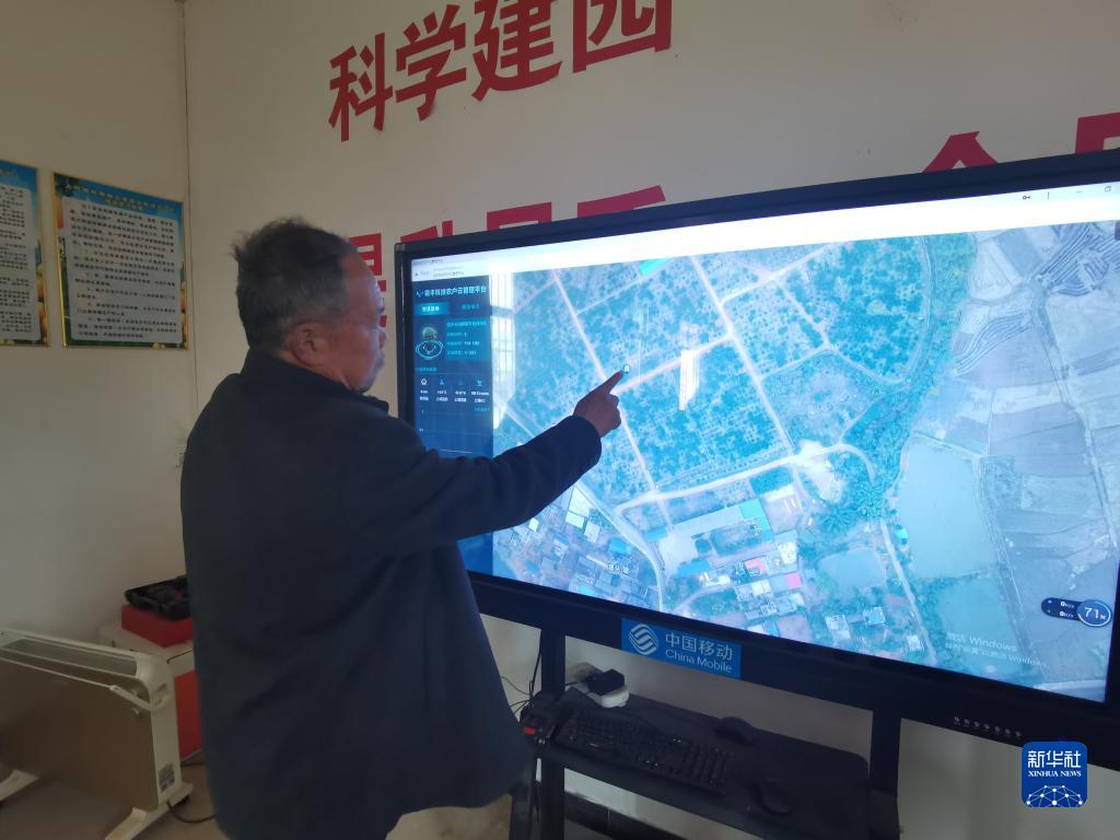康登明正在通過屏幕了解果園實(shí)時(shí)情況。新華社記者 熊家林 攝
