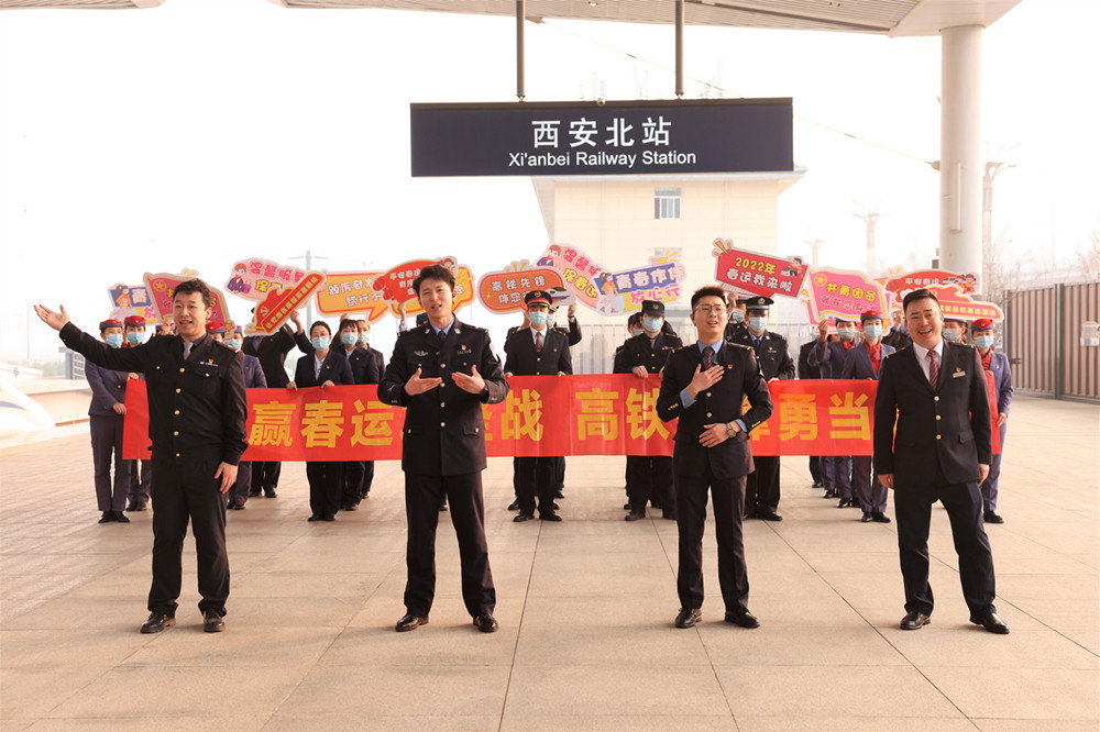 1月17日,來自中國鐵路西安局集團(tuán)有限公司黨團(tuán)員代表,在西安北站演唱西鐵版《西安人的歌》。