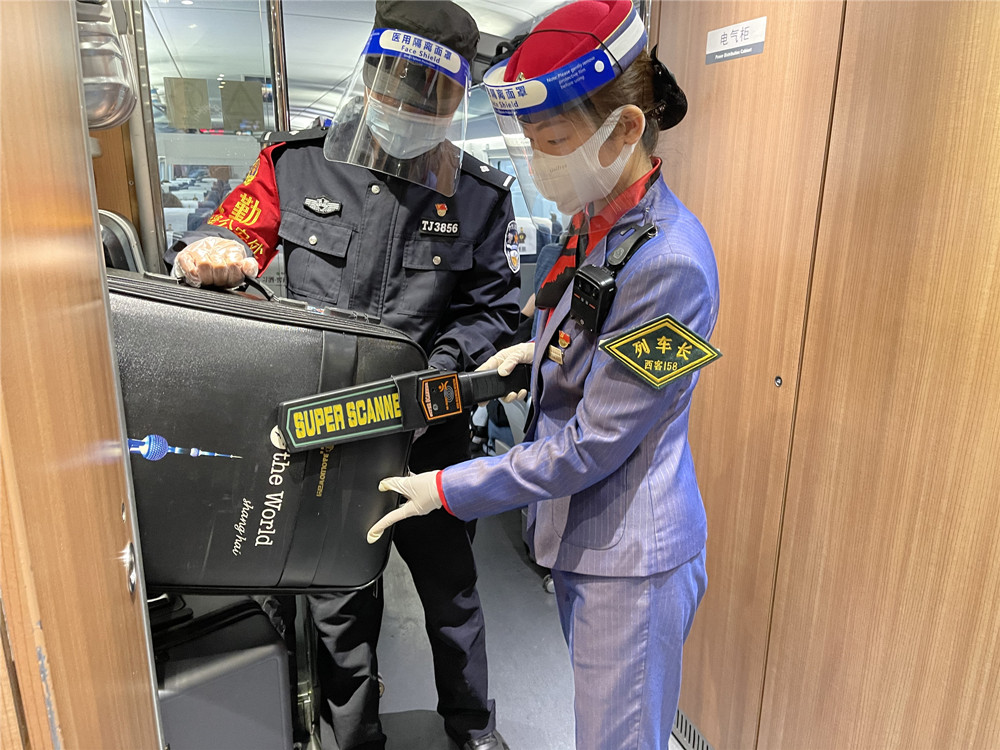 西安“高鐵先鋒”放置乘客行李并進(jìn)行安全檢查。