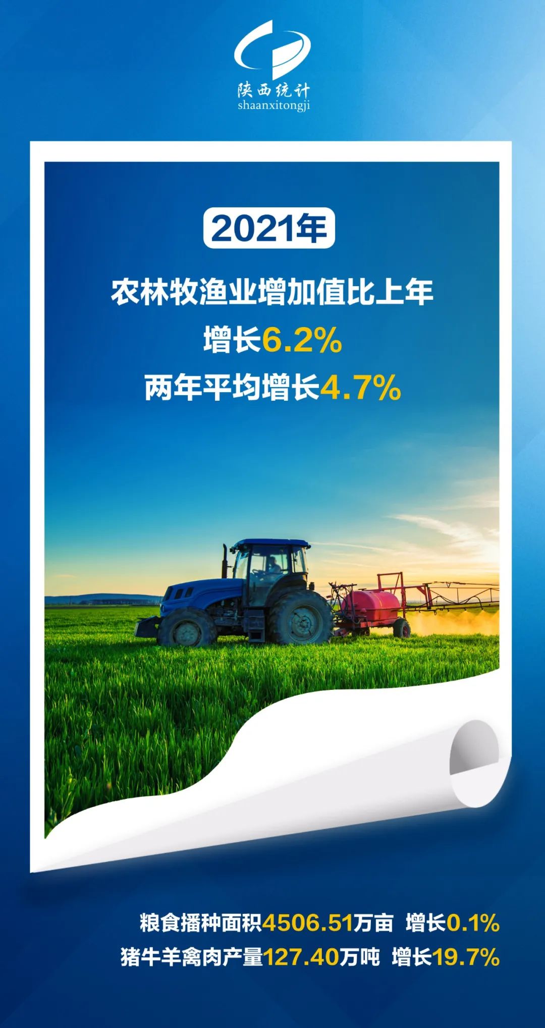 今天(1月19日),陜西省統(tǒng)計局發(fā)布2021年陜西國民經(jīng)濟(jì)運(yùn)行情況。根據(jù)地區(qū)生產(chǎn)總值統(tǒng)一核算結(jié)果,2021年,全省實現(xiàn)地區(qū)生產(chǎn)總值29800.98億元,按不變價格計算,比上年增長6.5%,兩年平均增長4.3%。其中,第一產(chǎn)業(yè)增加值2409.39億元,增長6.3%,兩年平均增長4.8%;第二產(chǎn)業(yè)13802.52億元,增長5.6%,兩年平均增長3.4%;第三產(chǎn)業(yè)13589.07億元,增長7.3%,兩年平均增長4.9%。