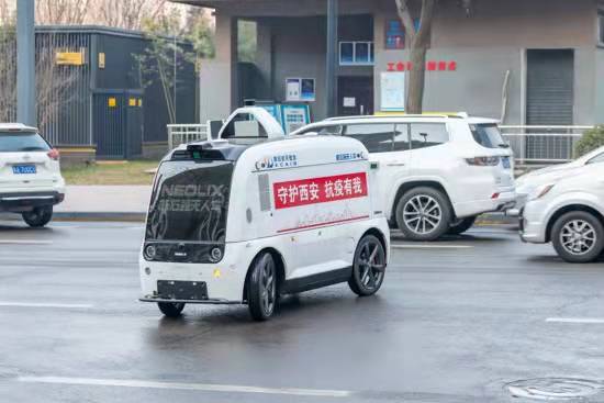 這輛憨態(tài)可掬的白色小車,便是航天基地轄區(qū)企業(yè)——新石器交叉信息核心技術(shù)研究院(西安)有限公司運(yùn)營的新石器無人車。為了減輕封控管理小區(qū)物資保障壓力,1月10日,在航天基地與該公司的密切配合下,新石器無人車在航天基地正式上崗,打通了便利店到社區(qū)配送的“最后一米”。