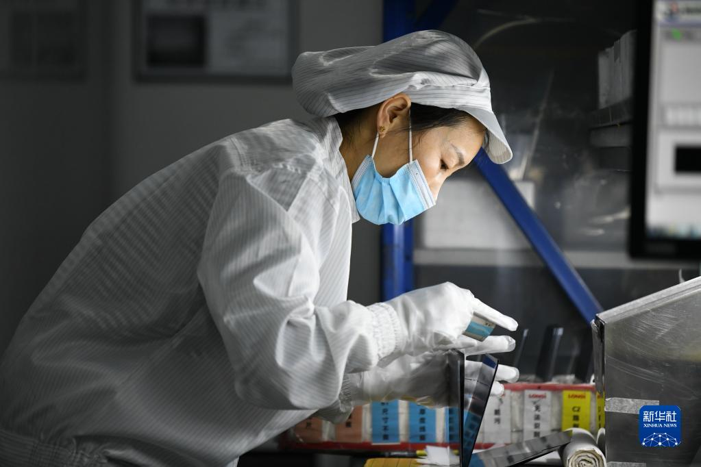 1月18日,在隆基綠能科技股份有限公司西安切片工廠,工人在進行檢測包裝作業(yè)。新華社記者 李一博 攝