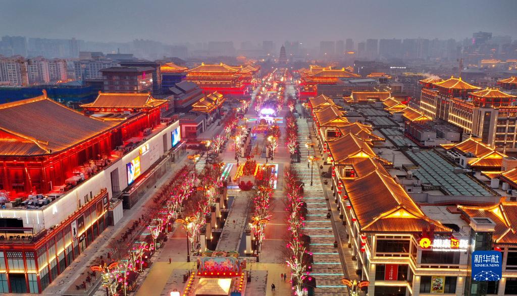 1月21日拍攝的大唐不夜城(無(wú)人機(jī)照片)。新華社記者 陶明 攝