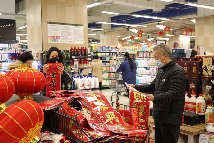 “今天解封了,我們趕緊出來(lái)透透氣,也趁機(jī)采購(gòu)點(diǎn)年貨。”一名在年貨區(qū)挑選對(duì)聯(lián)的市民說(shuō),居家防疫期間很多日用品都用完了,在網(wǎng)上購(gòu)買(mǎi)快遞也不一定能送到,小區(qū)解封后他早早就出門(mén)了,準(zhǔn)備多買(mǎi)點(diǎn)東西。
