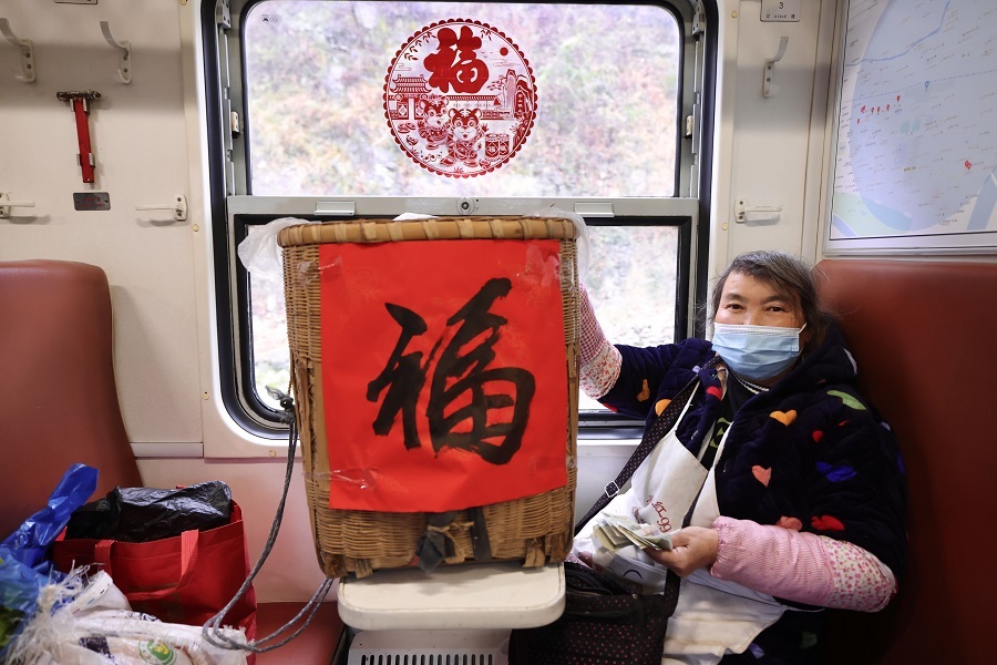列車到達略陽車站前,早早在車門口等候下車的乘客劉大姐對準備打開車門組織乘降的列車員衛(wèi)進忠開心地說:“今天這趟沒白跑,收到了小慢車送的對聯和福字,這個年真是吉祥,謝謝你們!”“每年我們都會在小年為老鄉(xiāng)們送上新年祝福,大家的致富路上,小慢車一直都在,從不會缺席。”衛(wèi)進忠說。