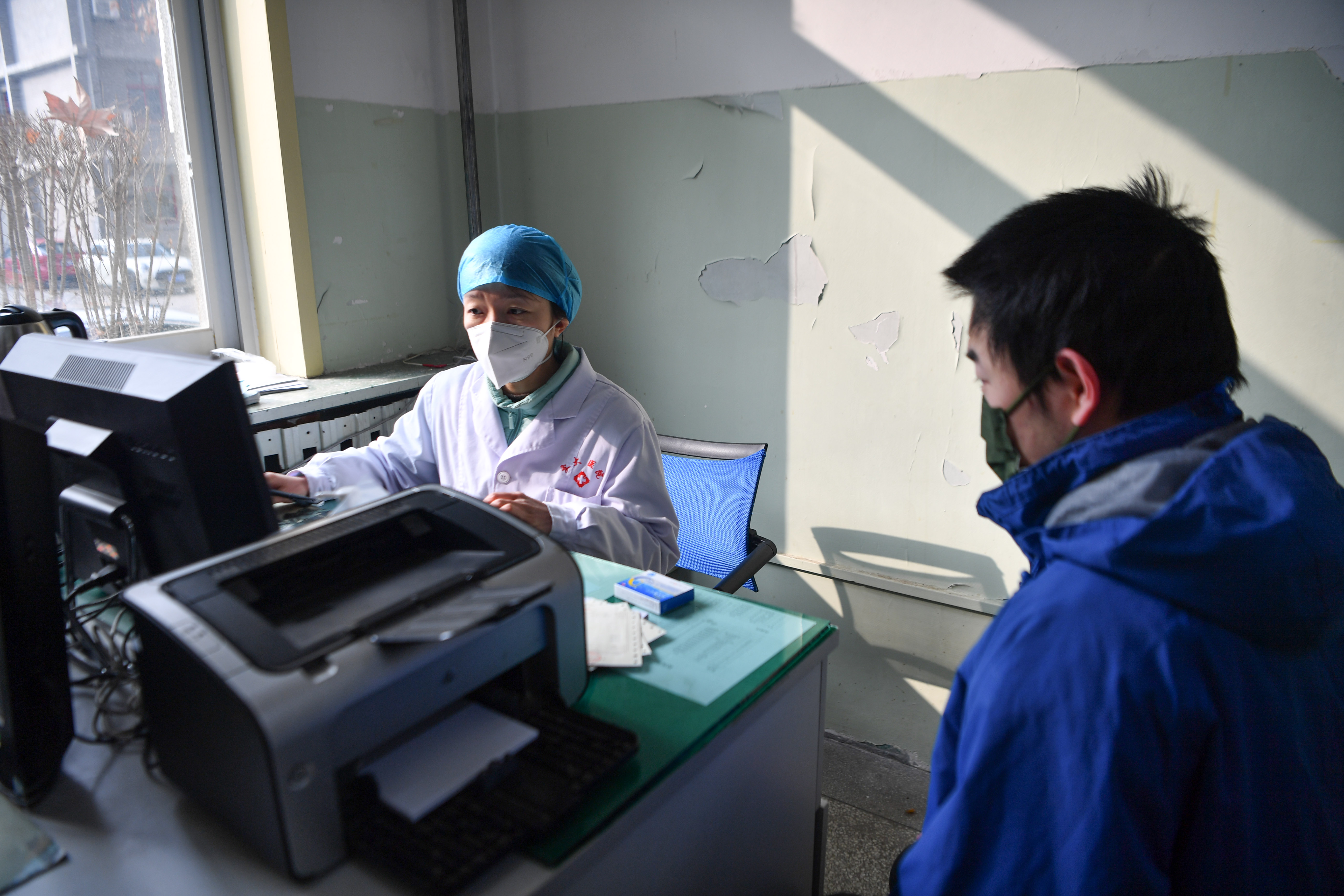 1月29日,醫(yī)生在西安交通大學(xué)興慶校區(qū)校醫(yī)院工作。新華社記者 張博文 攝