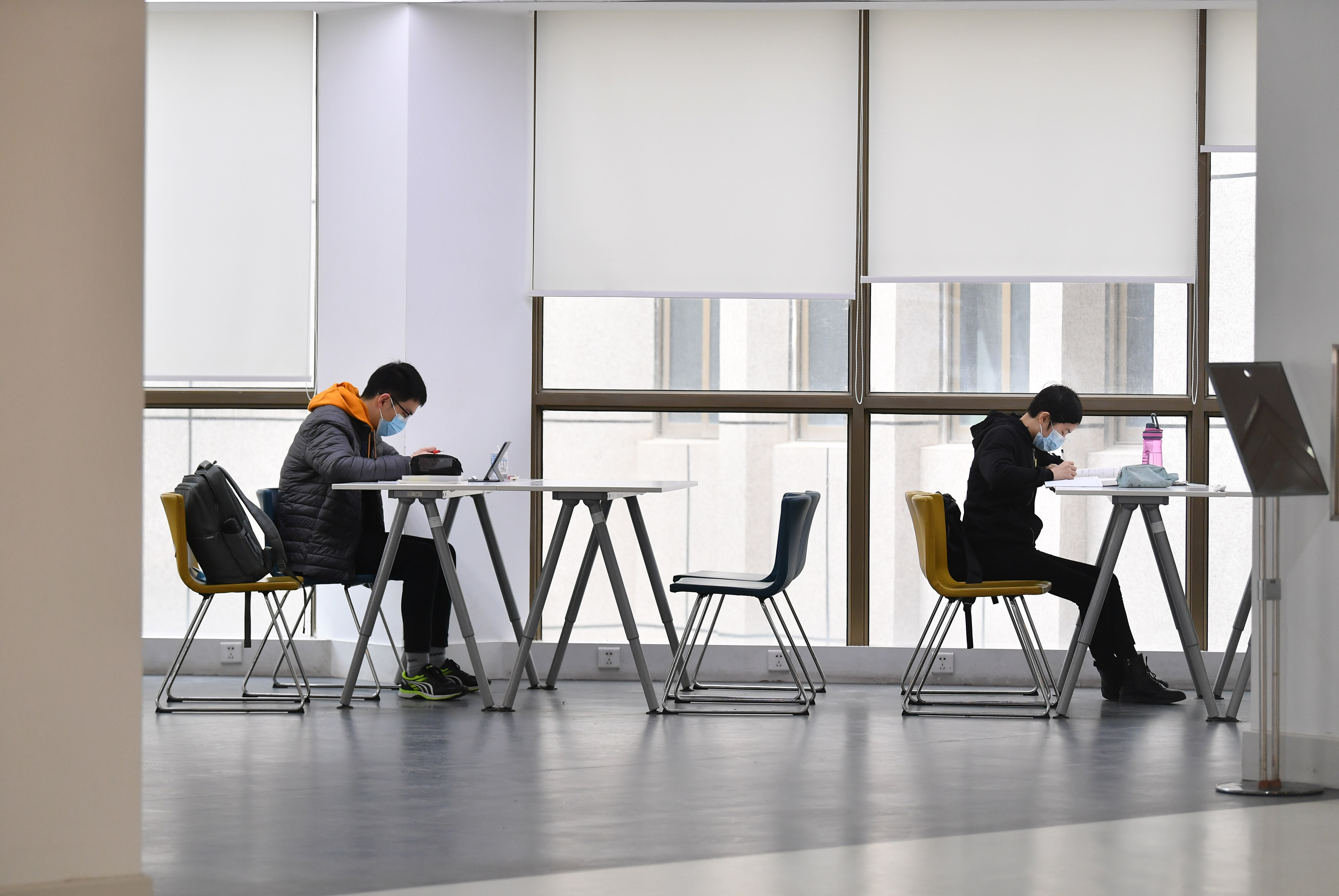 1月29日,留校學(xué)生在西安交通大學(xué)興慶校區(qū)圖書(shū)館自習(xí)。