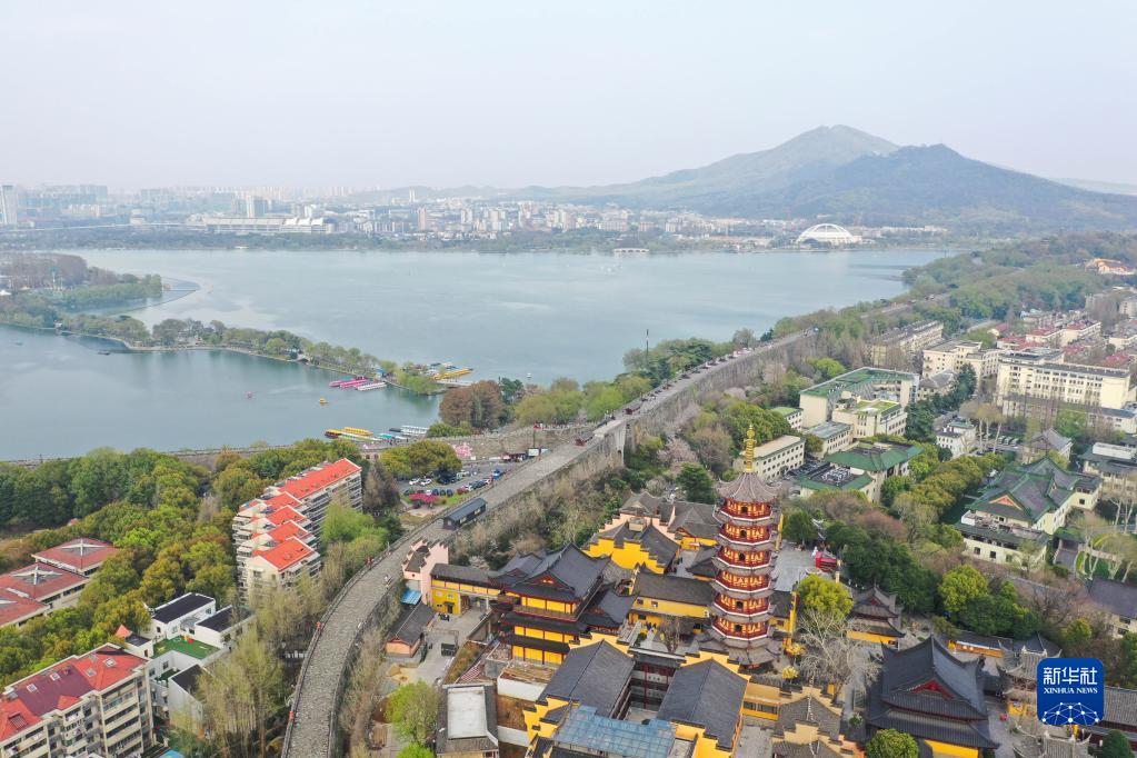 3月23日,游人在南京玄武湖公園游玩(無(wú)人機(jī)照片)。新華社記者 季春鵬 攝