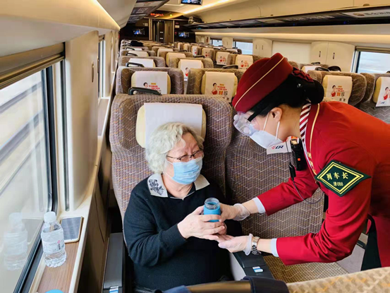 工作起初,付婷婷像每一個職場小白一樣,初入社會,面對繁復(fù)的工作,難免手足無措。她說:“我仍然記得第一次在旅客面前哭鼻子,當(dāng)時的委屈和不被理解令我手足無措。后來隨著乘務(wù)經(jīng)驗的積累,我漸入佳境,無論是處理事情還是與旅客交流,都變得更加從容。”十年來,隨著高鐵列車的飛速發(fā)展,付婷婷始終堅持錘煉“內(nèi)功”,實現(xiàn)與高鐵列車的同步成長。休班時間,她不僅努力提升著自己的學(xué)歷,為了更好地服務(wù)重點旅客,她還認(rèn)真學(xué)習(xí)了手語和心理學(xué),積極帶領(lǐng)班組研究總結(jié)適用于上海線路特點的服務(wù)招法。“靜音車廂”推出后,付婷婷又帶領(lǐng)團(tuán)隊在反復(fù)實踐中不斷探索針對“靜音車廂”的特色服務(wù)。她的這些努力不僅在同線路其他班組全面推廣,還得到了旅客的廣泛認(rèn)可,在為旅客帶來全新服務(wù)體驗的同時,大幅度提升了旅客乘車舒適度。把旅客時刻放在心上是她在每一次急難險重任務(wù)中第一時間沖上去的重要原因,她以無悔付出把“每一次”值乘都當(dāng)作“第一次”值乘。