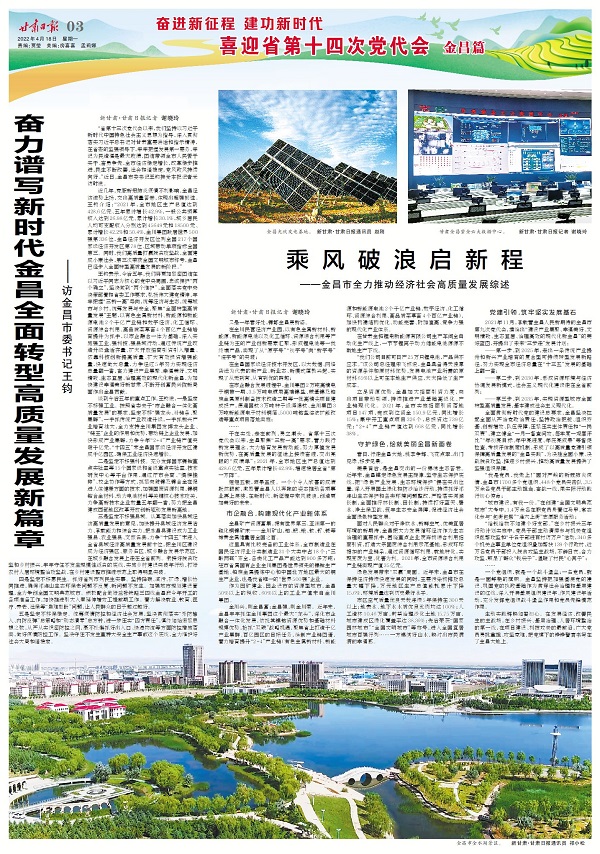王鈞表示,今后五年,我們將更加緊密團(tuán)結(jié)在以習(xí)近平同志為核心的黨中央周圍,忠誠(chéng)擁護(hù)“兩個(gè)確立”,堅(jiān)決做到“兩個(gè)維護(hù)”,全面落實(shí)黨中央決策部署和省委工作要求,弘揚(yáng)偉大建黨精神,牢牢把握“三新一高”導(dǎo)向,統(tǒng)籌經(jīng)濟(jì)與生態(tài),統(tǒng)籌城市與鄉(xiāng)村,統(tǒng)籌發(fā)展與安全,聚焦“全面轉(zhuǎn)型高質(zhì)量發(fā)展”主題,以有色金屬新材料、新能源和新能源電池2個(gè)千億產(chǎn)業(yè)鏈和數(shù)字經(jīng)濟(jì)、化工循環(huán)、資源綜合利用、高品質(zhì)菜草畜4個(gè)百億產(chǎn)業(yè)鏈培育提升為抓手,以市企融合一體為基礎(chǔ),深入實(shí)施強(qiáng)工業(yè)、強(qiáng)科技、強(qiáng)縣域行動(dòng),通過(guò)傳統(tǒng)產(chǎn)業(yè)改造升級(jí)盤活存量、擴(kuò)大開(kāi)放招商引資引入增量、依靠科技創(chuàng)新提高質(zhì)量、擴(kuò)大有效投資增強(qiáng)能量,快速做大總量,力爭(zhēng)經(jīng)過(guò)5年努力實(shí)現(xiàn)經(jīng)濟(jì)總量翻一番,奮力建設(shè)產(chǎn)業(yè)集聚、幸福美好、文明精致、生態(tài)宜居、治理高效的現(xiàn)代化新金昌,為加快建設(shè)幸福美好新甘肅、不斷開(kāi)創(chuàng)富民興隴新局面作出金昌貢獻(xiàn)。