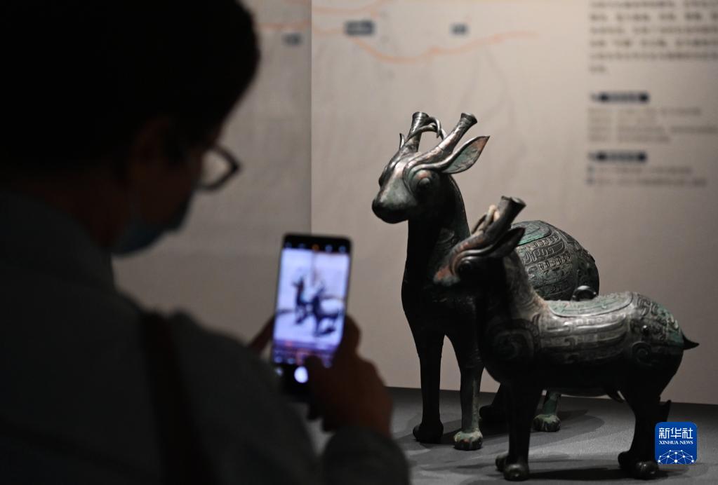 4月28日,游客在陜西考古博物館內(nèi)參觀寶雞石鼓山商周墓地出土的犧尊。新華社記者 李一博 攝