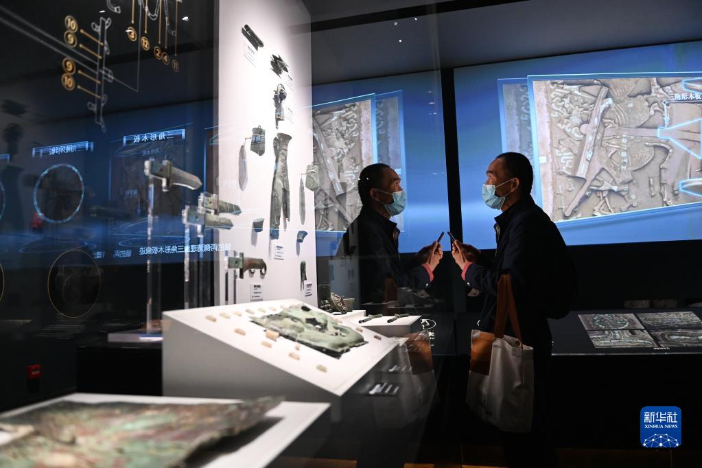 4月28日,游客在陜西考古博物館內(nèi)參觀。新華社記者 李一博 攝