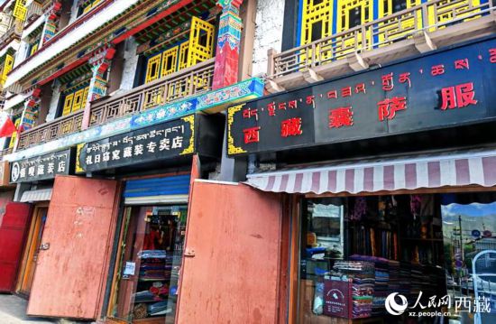 環(huán)繞拉薩八廓古城,開(kāi)滿了藏裝店。人民網(wǎng) 李海霞攝
