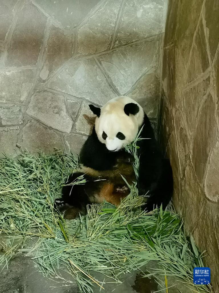 這是8月8日拍攝的監(jiān)控里的海歸大熊貓“二順”。新華社記者 唐奕 攝