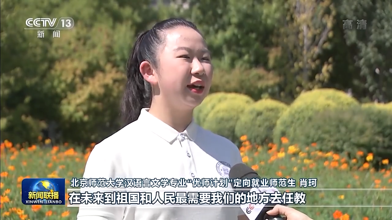 北京師范大學(xué)漢語(yǔ)言文學(xué)專業(yè)“優(yōu)師計(jì)劃”定向就業(yè)師范生 肖珂:總書記勉勵(lì)我們?cè)鲩L(zhǎng)傳道授業(yè)解惑本領(lǐng),在未來到祖國(guó)和人民最需要我們的地方去任教。我定不負(fù)囑托,努力學(xué)習(xí),在畢業(yè)后回到我的家鄉(xiāng)。