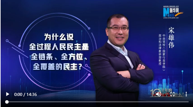 十年非凡成就,蘊藏深刻啟示。如何用中國理論闡釋中國實踐?新華網(wǎng)聯(lián)合中央黨校(國家行政學院)國家高端智庫,推出“思客講堂·黨校公開課(第三季)”《以“理”服人:十年的十個“為什么”》。十位黨校青年教師通過十集理論短視頻,帶你探究非凡成就背后的“中國密碼”。本期讓我們跟隨中央黨校(國家行政學院)政法教研部教授宋雄偉,感受全過程人民民主在中國的生動實踐。
