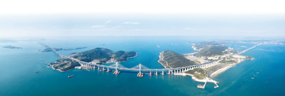 航拍連接福銀高速的平潭海峽公鐵大橋。福銀高速是國家高速公路網中一條承東啟西、貫通東南至西北的運輸大動脈。 |