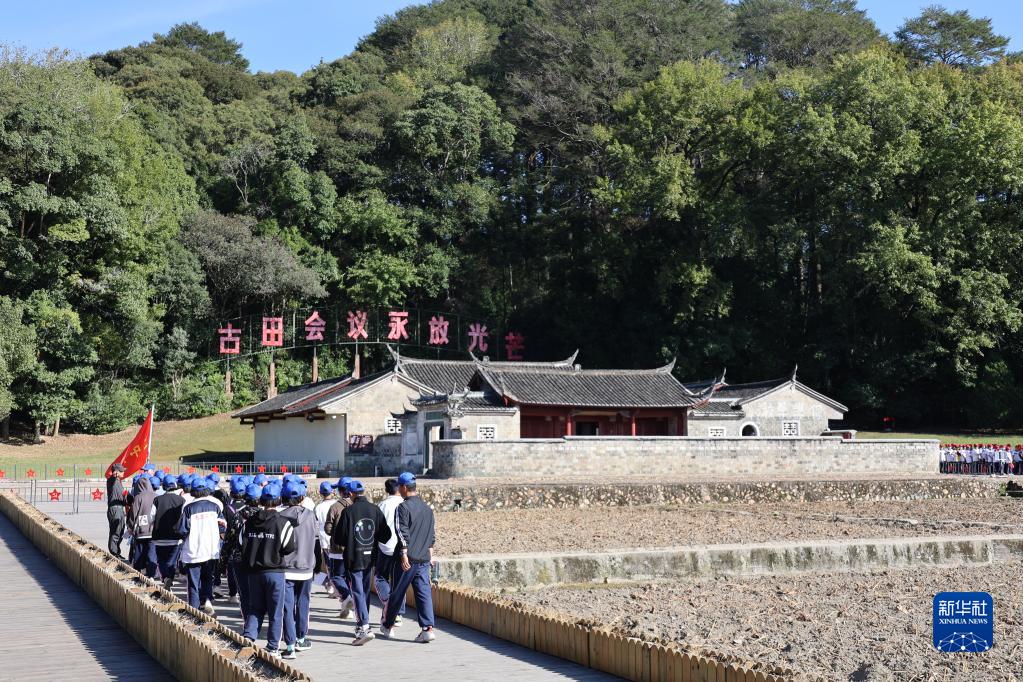 10月19日,在福建省上杭縣古田鎮(zhèn),中學生研學團隊在古田會議會址參觀學習。新華社發(fā)(范道鑫 攝)