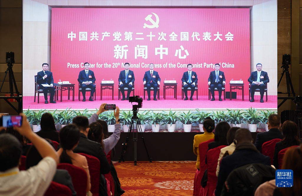10月20日,中國(guó)共產(chǎn)黨第二十次全國(guó)代表大會(huì)新聞中心舉行集體采訪。青海、寧夏、新疆、中央和國(guó)家機(jī)關(guān)、中央金融系統(tǒng)、中央企業(yè)系統(tǒng)(在京)代表團(tuán)新聞發(fā)言人出席,介紹代表團(tuán)學(xué)習(xí)討論二十大報(bào)告情況,并回答記者提問。新華社記者 張玉薇 攝