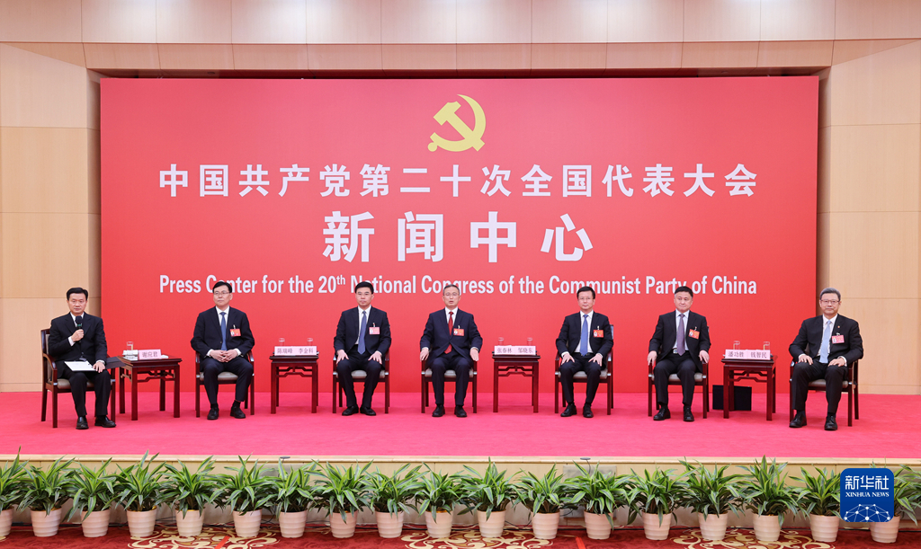 10月20日,中國(guó)共產(chǎn)黨第二十次全國(guó)代表大會(huì)新聞中心舉行集體采訪。青海、寧夏、新疆、中央和國(guó)家機(jī)關(guān)、中央金融系統(tǒng)、中央企業(yè)系統(tǒng)(在京)代表團(tuán)新聞發(fā)言人出席,介紹代表團(tuán)學(xué)習(xí)討論二十大報(bào)告情況,并回答記者提問。新華社記者 陳建力 攝