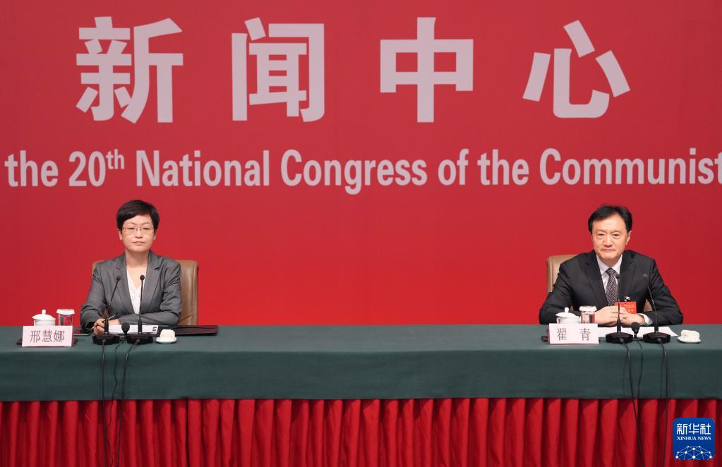 10月21日,中國共產(chǎn)黨第二十次全國代表大會新聞中心舉行記者招待會。生態(tài)環(huán)境部黨組成員、副部長翟青圍繞“建設(shè)人與自然和諧共生的美麗中國”主題與記者交流。新華社記者 宋彥樺 攝