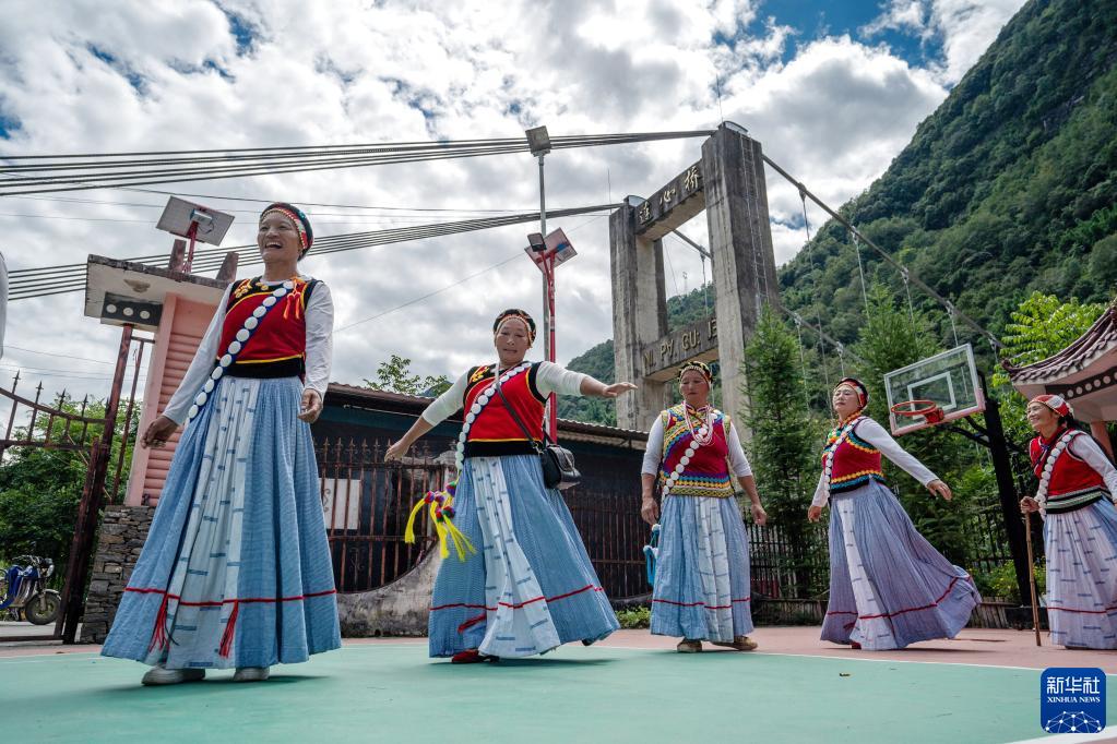 云南省怒江州福貢縣石月亮鄉(xiāng)拉瑪?shù)状宕迕褡园l(fā)組成的“奮進(jìn)合唱團(tuán)”在村委會排練節(jié)目(2022年9月14日攝)。2020年,怒江州26.96萬貧困人口全部脫貧,249個(gè)貧困村全部出列,4個(gè)貧困縣(市)全部摘帽。新華社記者 江文耀 攝