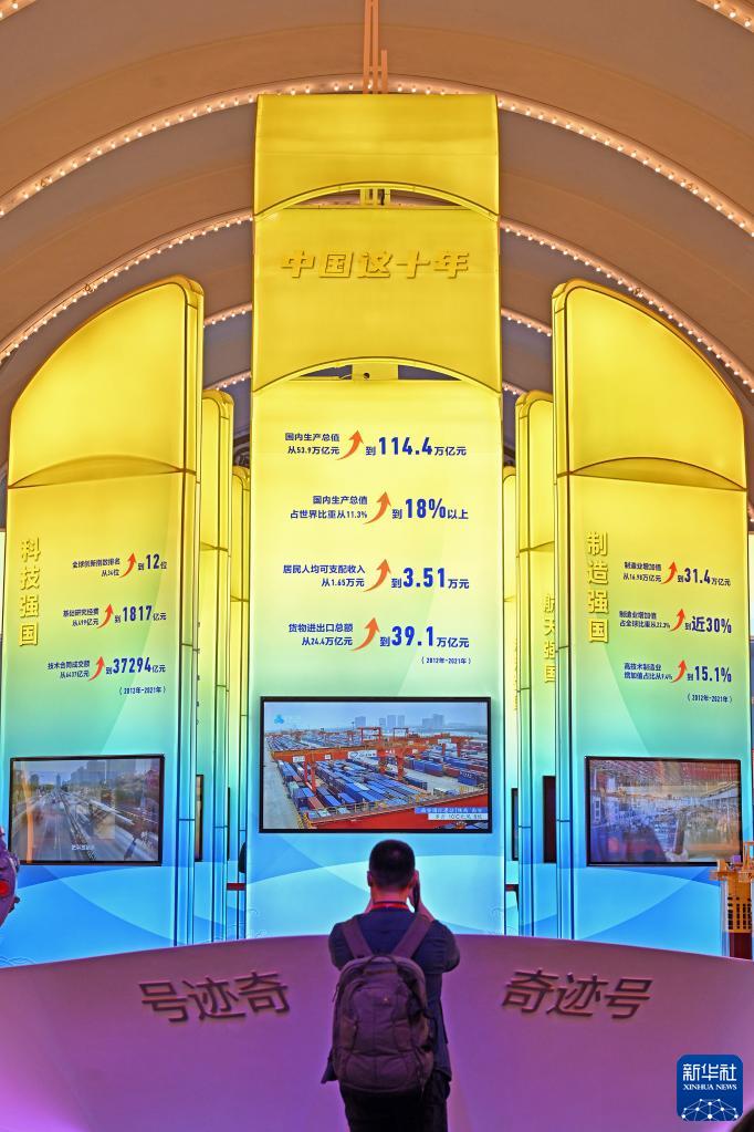 在“奮進(jìn)新時(shí)代”主題成就展的中央綜合展區(qū),一艘中國經(jīng)濟(jì)“奇跡號”巨輪模型吸引了參觀者的目光。在時(shí)代洪流中奮楫揚(yáng)帆,于驚濤駭浪中行穩(wěn)致遠(yuǎn),非凡十年深刻啟示:正是因?yàn)榇_立了習(xí)近平同志黨中央的核心、全黨的核心地位,確立了習(xí)近平新時(shí)代中國特色社會主義思想的指導(dǎo)地位,黨才有力解決了影響黨長期執(zhí)政、國家長治久安、人民幸福安康的突出矛盾和問題,消除了黨、國家、軍隊(duì)內(nèi)部存在的嚴(yán)重隱患,從根本上確保實(shí)現(xiàn)中華民族偉大復(fù)興進(jìn)入了不可逆轉(zhuǎn)的歷史進(jìn)程。