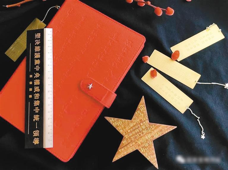 文創(chuàng)精品“紅寶”套裝,包括筆記本、便簽夾、直尺、金屬書簽和紙膠帶等五件產(chǎn)品。此套文創(chuàng)產(chǎn)品榮獲國家知識產(chǎn)權(quán)局頒發(fā)的國家外觀設(shè)計專利證書,“紅”字代表“紅軍”“紅色圣地”,“寶”字代表“中國革命之瑰寶”。紅寶用現(xiàn)代語言講述紅色故事,強化紅色文化,傳承紅色精神。以新時代背景下的紅色精神號召全民堅定意志,勇往直前,為實現(xiàn)中華民族偉大復(fù)興的中國夢而不懈奮斗。