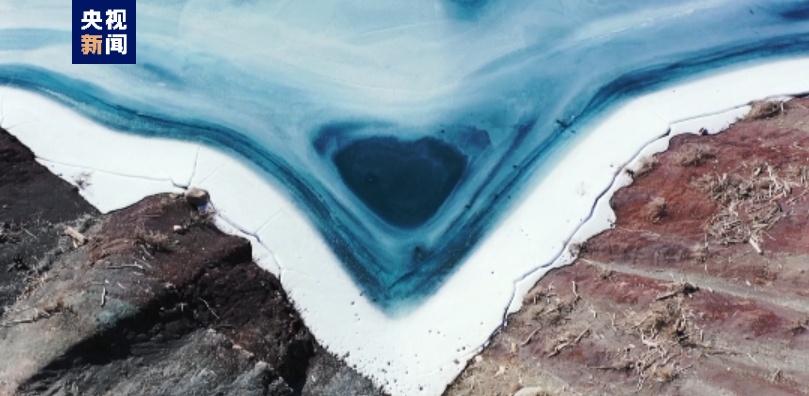 尤其令人驚嘆的是在湖的北邊,融化的湖水形成了一個自然的“海藍(lán)之心”,十分罕見,讓人驚嘆大自然的神奇。
