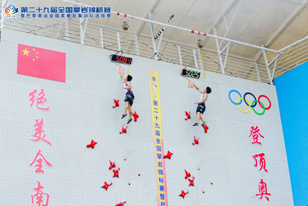 19日,本屆錦標(biāo)賽男子、女子速度賽開賽。男子項(xiàng)目走向頗具戲劇性。預(yù)賽中,上賽季國(guó)際攀聯(lián)世界杯維拉爾站冠軍龍見國(guó)在預(yù)賽中就爬出5秒04,將其國(guó)家隊(duì)隊(duì)友龍金寶保持的該項(xiàng)目全國(guó)紀(jì)錄提高了百分之一秒。決賽的八進(jìn)四輪,龍見國(guó)再次爬出5秒04。但半決賽與龍金寶相遇時(shí),他卻因失誤被淘汰,無奈進(jìn)入三、四名決賽。