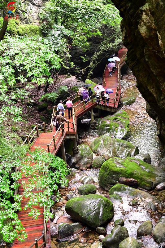 景區(qū)內(nèi),奇險峽谷,清流飛澗,匯聚了山水靈秀之美。蒼郁古樹,山泉婉轉,鬼斧神工的波光水色,如詩如畫的景致讓游客流連忘返。