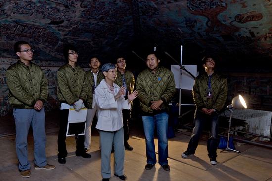 “當我走進敦煌研究院院史陳列館,當我站在九層樓對面的戈壁上,面對常書鴻先生、段文杰先生,以及老前輩們的墓碑時,當我看到80多歲的樊院長還在為莫高窟忙碌的背影時,景仰之情油然而生,熱淚會忍不住往上涌。”長期參與敦煌文物保護工作的北京化工大學教授、博士生導師王明明感慨地說。