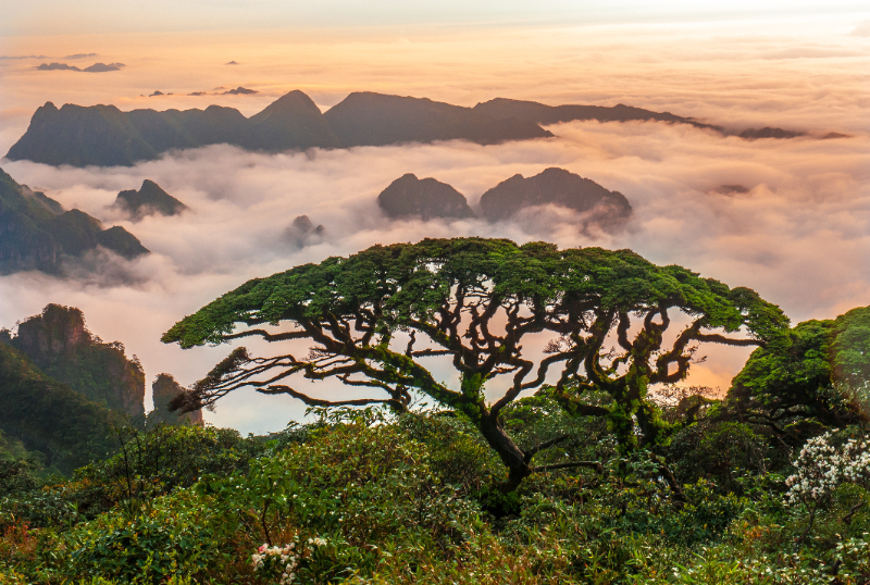 廣西大瑤山國家級自然保護(hù)區(qū)圣堂山頂“八桂迎客松”鐵杉,600年。李德康攝