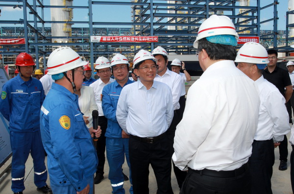 29日上午,孫金龍一行前往山東裕龍石化產(chǎn)業(yè)園,調(diào)研裕龍島煉化一體化項目。該項目位于煙臺市所轄龍口市,是山東省新舊動能轉(zhuǎn)換、現(xiàn)有地?zé)挳a(chǎn)能供給側(cè)改革升級的重點項目,規(guī)劃產(chǎn)能4000萬噸/年。孫金龍觀看了項目建設(shè)紀(jì)實片并參觀了裕龍石化展廳,聽取了項目有關(guān)介紹,隨后前往3號島和2號島實地查看一期建設(shè)情況,現(xiàn)場考察項目實施、設(shè)備工藝、環(huán)境安全等情況,仔細(xì)詢問污染物排放情況和廢水、廢氣及危險廢物處置措施。他強(qiáng)調(diào),推動發(fā)展方式綠色低碳轉(zhuǎn)型,產(chǎn)業(yè)綠色轉(zhuǎn)型升級是重點和關(guān)鍵。要健全生態(tài)環(huán)境法規(guī)政策標(biāo)準(zhǔn),強(qiáng)化生態(tài)環(huán)境準(zhǔn)入管理,加快促進(jìn)產(chǎn)業(yè)結(jié)構(gòu)調(diào)整優(yōu)化,通過高水平保護(hù)不斷塑造發(fā)展的新動能、新優(yōu)勢。要指導(dǎo)支持企業(yè)開展綠色低碳技術(shù)改造,嚴(yán)格落實環(huán)評審批要求和相關(guān)環(huán)保標(biāo)準(zhǔn)措施,確保環(huán)保設(shè)施建設(shè)到位、規(guī)范運行和達(dá)標(biāo)排放,切實做好環(huán)境風(fēng)險防范處置工作。