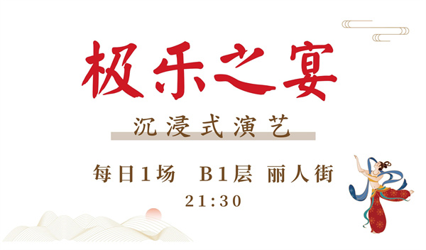 街區(qū)內(nèi)各個演出之間相互映襯、互為補(bǔ)充,在吸引人眼球的同時,加強(qiáng)了整體演藝的串聯(lián)性與驚喜感。你的視覺、聽覺與情緒都會隨著一場場演出逐步深入,沉浸到這場關(guān)于唐朝、關(guān)于長安最美妙的夢境中。街區(qū)里不時出現(xiàn)的花魁、文人墨客、居民、商販,為整個空間場景注入了靈魂。你可以隨時與這些不同身份、不同故事的人物互動,過一把戲癮。