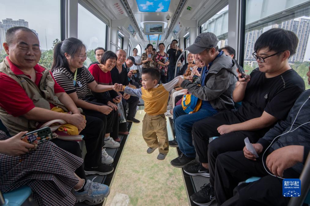 9月26日,乘客體驗空軌列車。新華社發(fā)(杜子璇 攝)