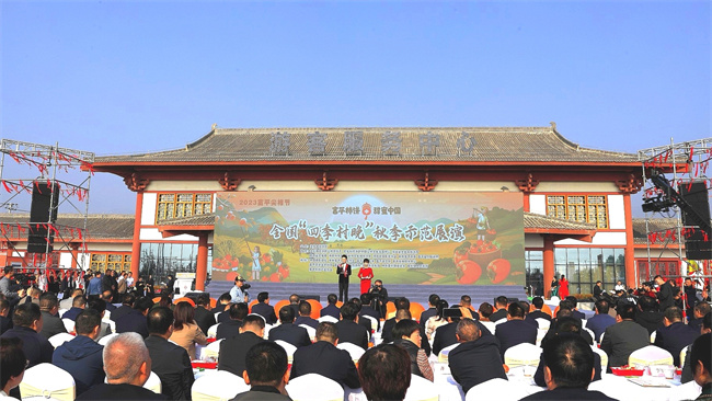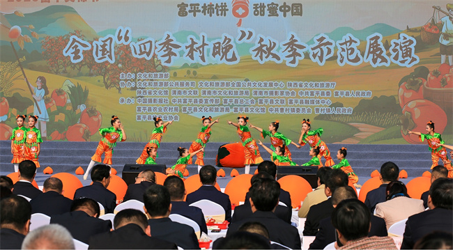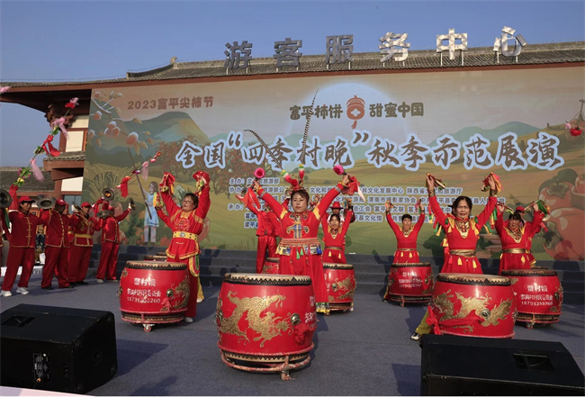 西部決策網(wǎng)訊(通訊員 瞿曉燕 別秋娟)人間知秋,柿果飄香,頻陽大地,“豐”景如畫。10月24日,由文化和旅游部主辦,文化和旅游部公共服務(wù)司、文化和旅游部全國公共文化發(fā)展中心、陜西省文化和旅游廳、陜西省文化館、渭南市文化和旅游局、中共富平縣委、富平縣人民政府承辦,以及中國攝影報(bào)社、中共富平縣委宣傳部、富平縣農(nóng)業(yè)農(nóng)村局、富平縣文化和旅游局、富平縣文化館、中共曹村鎮(zhèn)委員會、曹村鎮(zhèn)人民政府協(xié)辦的2023富平尖柿節(jié)全國“四季村晚”秋季示范展演活動在陜西省渭南市富平縣曹村鎮(zhèn)太白村(唐豐陵文化旅游景區(qū))隆重舉辦。富平縣黨員干部、柿農(nóng)代表、當(dāng)?shù)厝罕娨约皝砀挥慰妄R聚柿鄉(xiāng),共享一場鄉(xiāng)村文化盛宴。